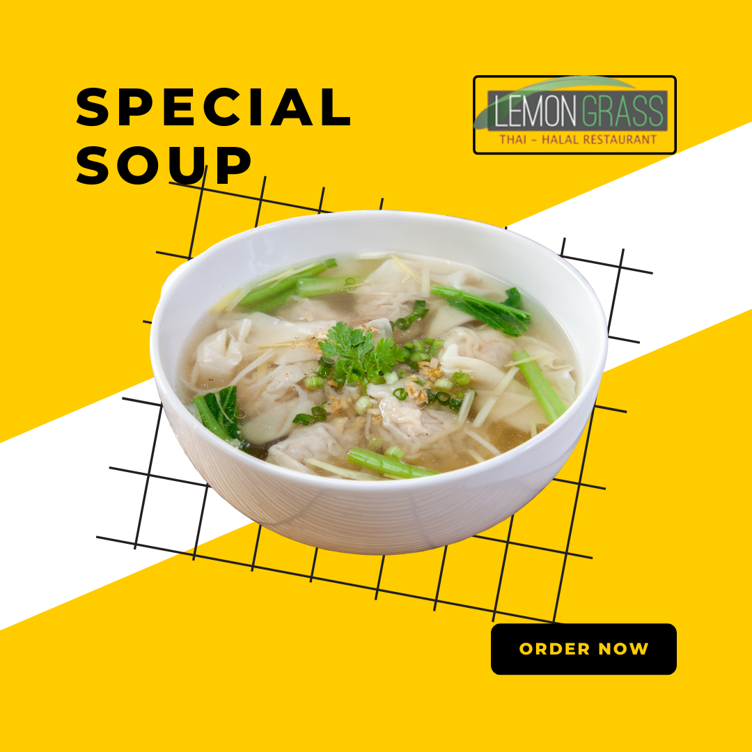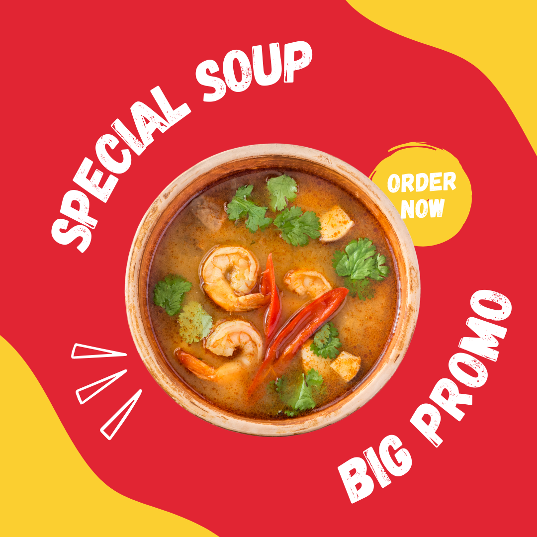 Tom Yum Goong is a classic Thai soup known for its bold and tangy flavors. This aromatic dish is made with fresh shrimp, lemongrass, galangal, kaffir lime leaves, and chilies. The broth is a perfect blend of sour, spicy, and slightly sweet, often finished with a splash of lime juice and fish sauce. It’s the ultimate comfort soup, full of fragrant herbs and a fiery kick.
